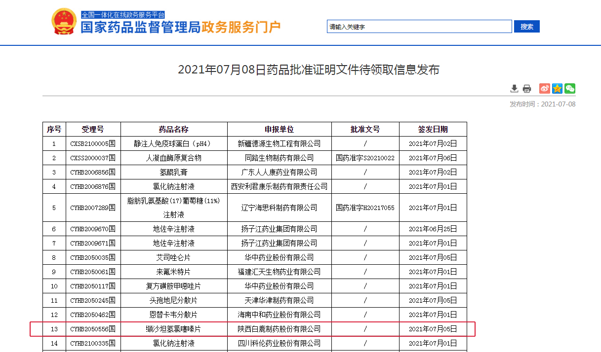 近日,國(guó)家藥品監(jiān)督管理局正式發(fā)布通知,華威醫(yī)藥受陜西白鹿制藥股份有限公司委托的纈沙坦氫氯噻嗪片項(xiàng)目正式通過(guò)仿制藥質(zhì)量和療效一致性評(píng)價(jià)。值得關(guān)注的是,這是國(guó)內(nèi)第四家通過(guò)纈沙坦氫氯噻嗪片的企業(yè)。